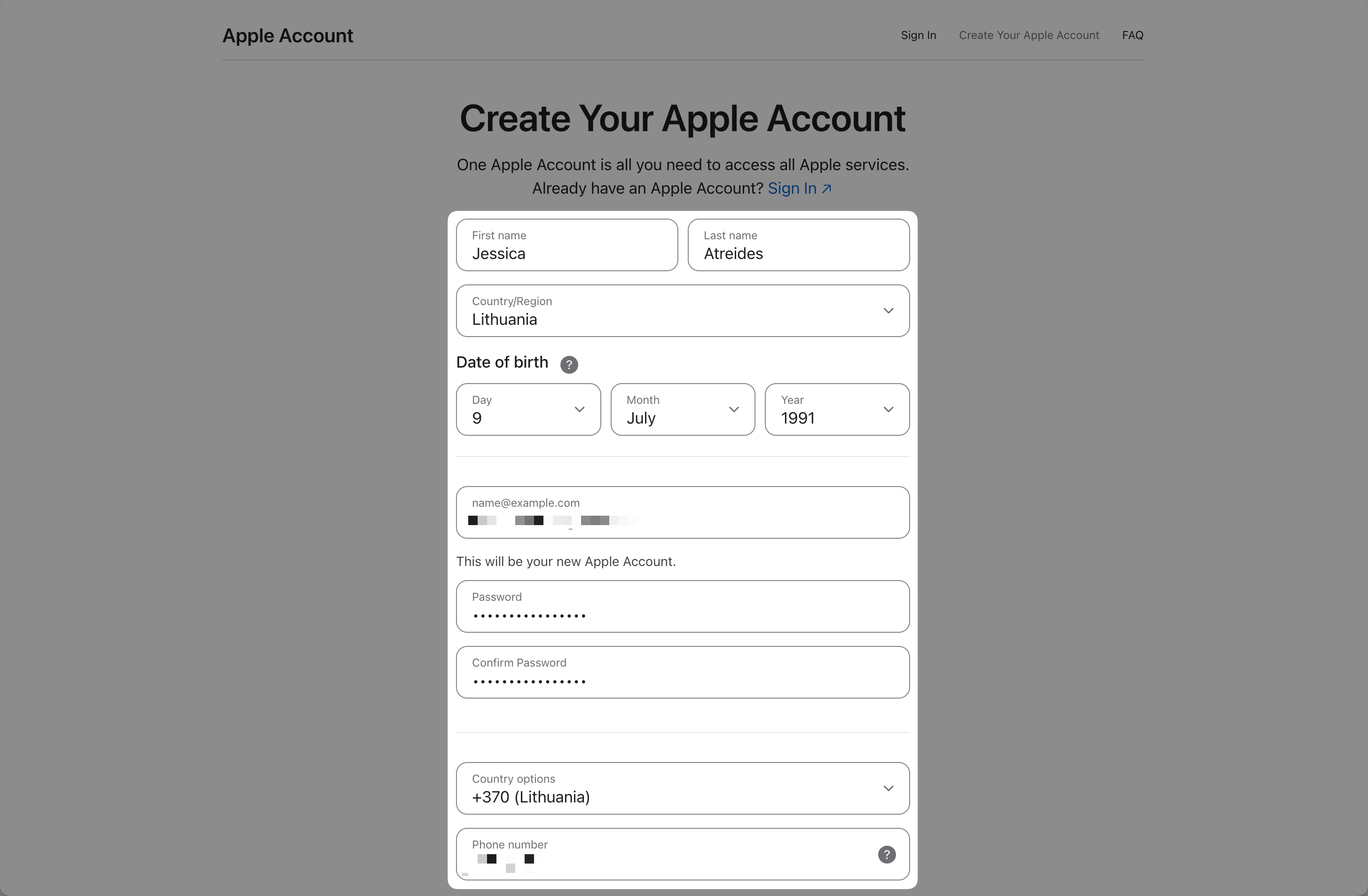Сохраните почту и пароль от созданного аккаунта Apple — они пригодятся дальше.
