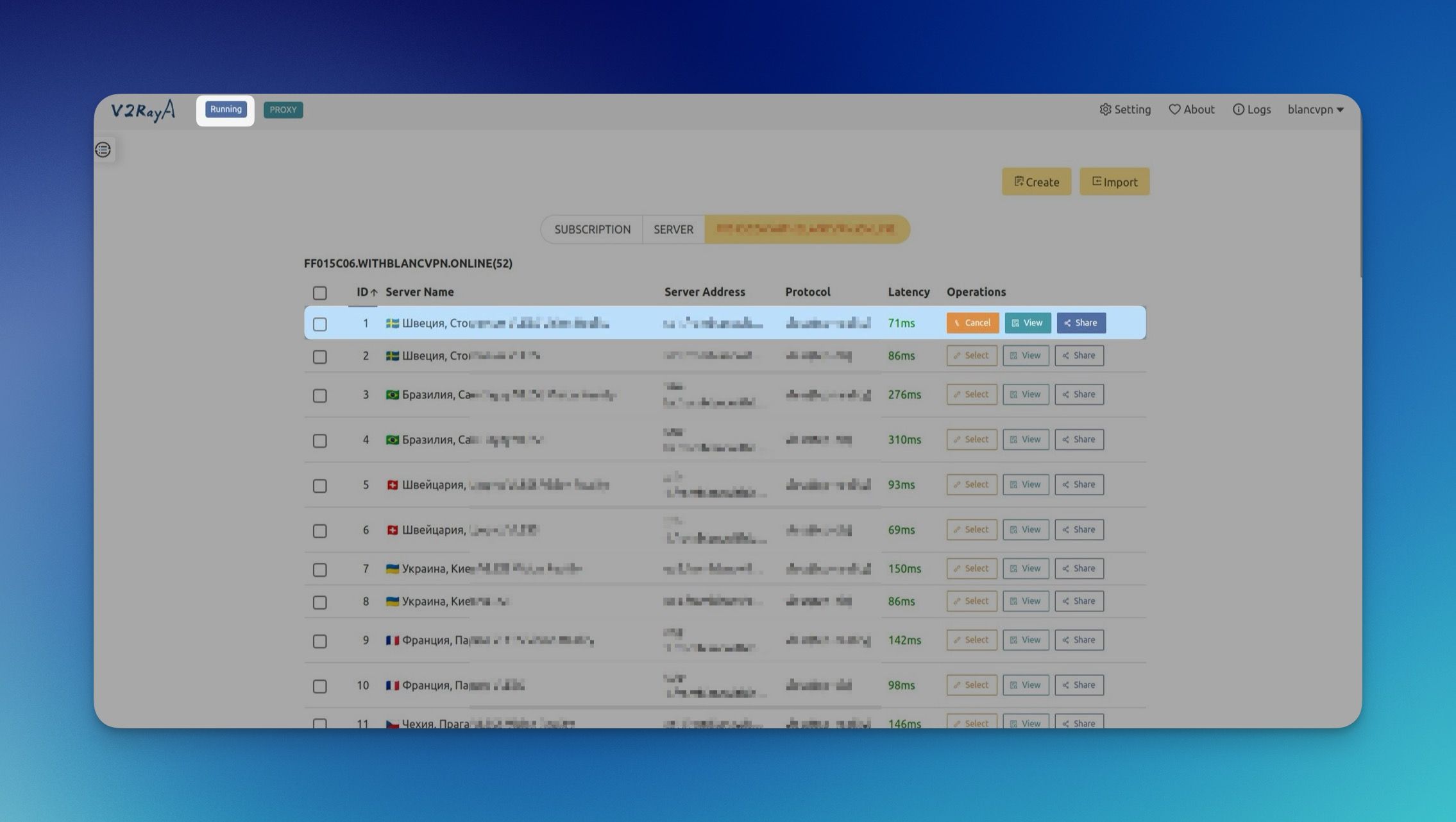 Нажмите Import (Импортировать), чтобы импортировать подписку.
