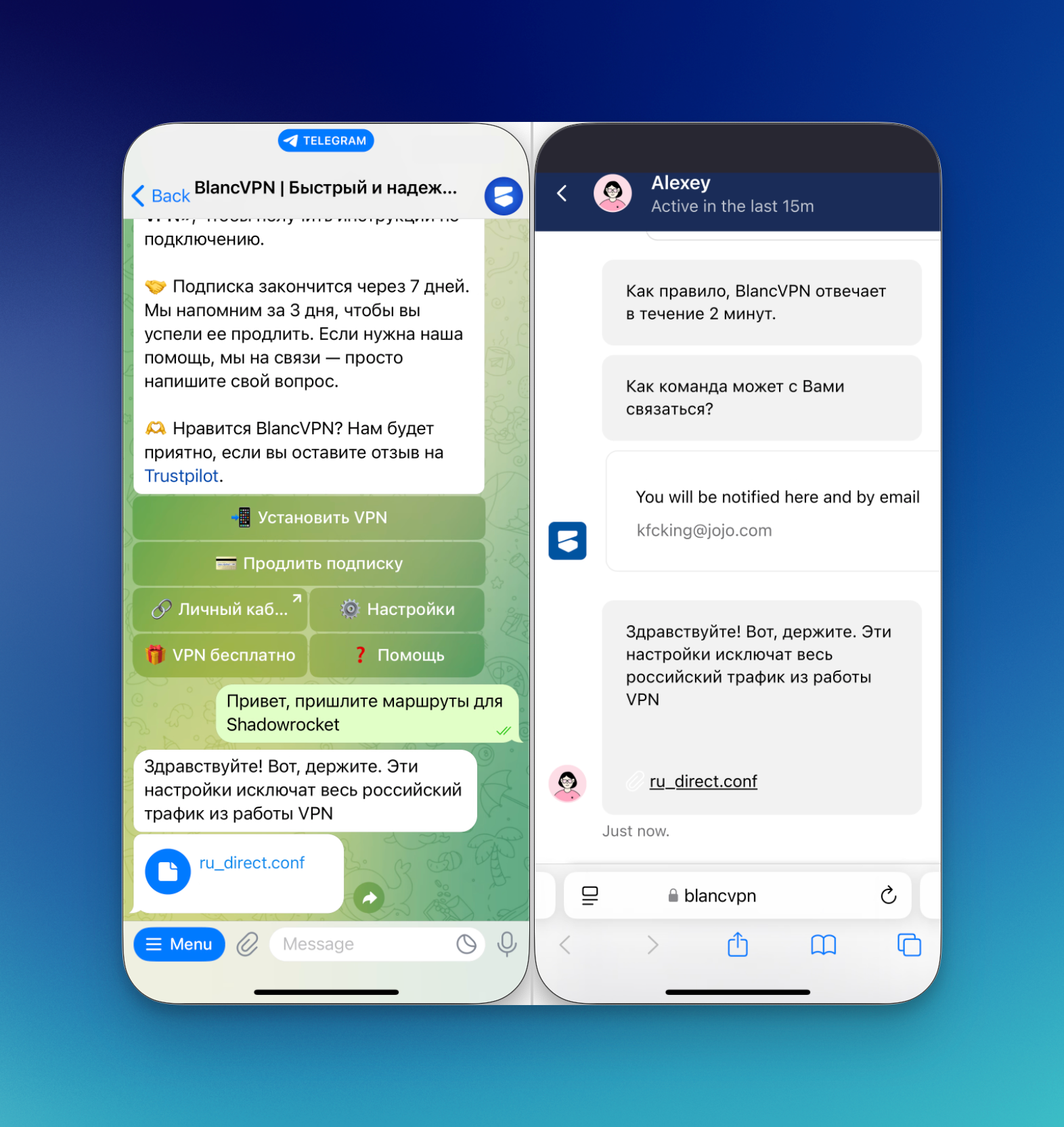 Получите в BlancVPN готовые файлы маршрутов для нужных сервисов. Например, чтобы исключить из работы VPN российские сервисы.